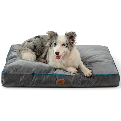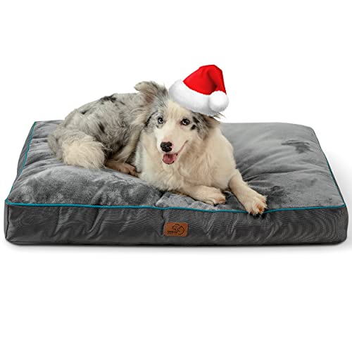REMOVABLE AND MACHINE WASHABLE COVER - The 100% polyester soft and durable plush zippered cover is easy to clean and has a non-skid bottom (36"x27"x4" Large size dog bed pillows are recommended for dogs or pets up to 75 lbs, Not recommended for pets with chewing behavior)