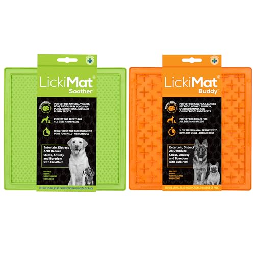 RECOMMENDED BY VETS AND TRAINERS - redirect all licking habits and perfect aid to reduce crate training time. Works with all manner of treats and foods, ranging from yogurt, peanut butter and spreadable treats, raw, wet, dry and liquid foods, allowing your pet to enjoy just a small amount of food. LickiMats are a perfect delivery system for supplements, medications and treats. Reinforce good behavior and replace anxiety with a long-lasting treat. Perfect for crate training. Slow Feeder For Dogs.