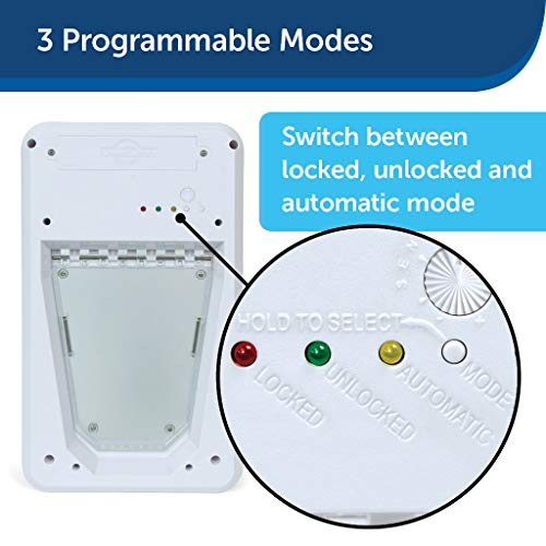CUSTOMIZE YOUR PET’S ACCESS: The SmartDoor features programmable selective entry, exit and auto-locking options PEACE OF MIND: The SmartDoor works with the waterproof SmartKey worn on your pet's collar; only the pets wearing the SmartKey can go in and out MULTIPLE PETS: Great for households with multiple pets; programmable for up to 5 SmartKeys BATTERY OPERATED: The SmartDoor is battery operated (4 D-Cell Batteries, not included) DOOR INSTALLATION: Designed for installation in interior/exterior doors; wall installation option available with purchase of Wall Install Kit EXPERIENCE: PetSafe brand has been an industry leading U.S. manufacturer of pet behavior, containment and lifestyle products since 1991, helping millions of people and pets each year