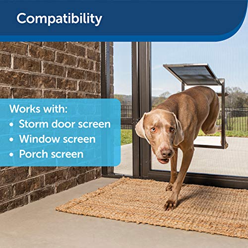 Dimensions: For pets up to 100 pounds; Flap opening size is 10 1/4 inch W x 17 1/8 inch H; Measure your pet to ensure comfortable use