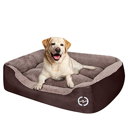 ?HIGH QUALITY MATERIAL OF PET BED: Cozy medium dog bed is made of soft fabric, non-toxic and environmental friendly. Stuffed with eco-friendly PP cotton keep the dog bed warm and comfortable, provide a comfortable, healthy sleeping environment, aslo can maintain its original shape for a long time.