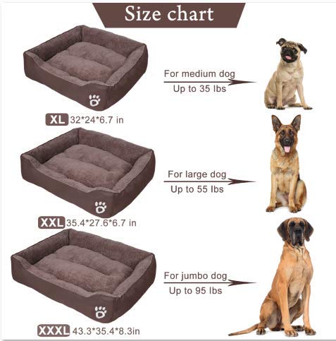 ?SIZE &COLOR: Dog beds for medium dogs measuring from outside of bolster: 32'' x 24'' x 6.7'' sleeping area inside bolster: 24'' x 16'' x 4.3'' .The dog bed ideal for Medium or multiple puppies and pets young. Maximum weight of Medium dog should not more than 35 pounds.