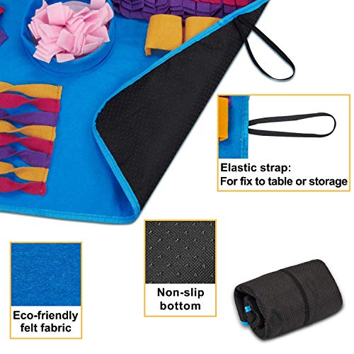STIMULATE NATURAL BEHAVIORS - The snuffle mat stimulates pet's foraging instinct and satisfies sense of smell. Make your dog's nose and brain to work by mimicking the hunt for food. (10mins snuffling = 1 hour running). Hide your pet's food and treats in the snuffle mat, encourage them to search it, to keep them busy when you needed. Keeps your dog occupied and avoid your dog being bored and engaged in destructive behavior.