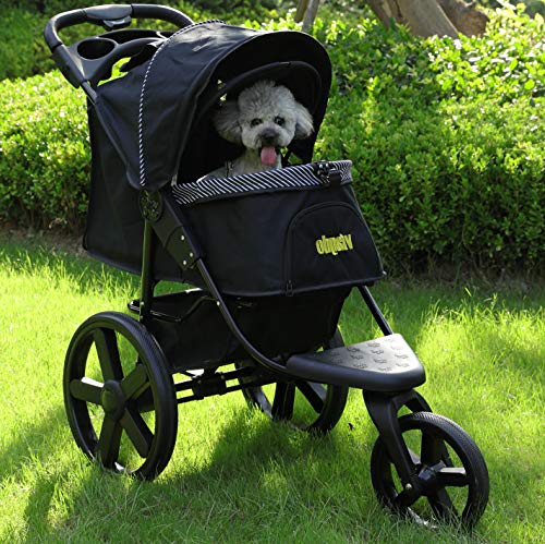 ?QUICKLY SET UP & ONE HAND FOLDING?The dog stroller easy to setup in few minutes with the install manual and no tools required; When you done, fold the stroller easily with a press of a button on the handle; The folded cat stroller size is 39.3"H x 16.9"L and weighs only 20lbs, you can put the cat stroller into the trunk of the car; Great for travel and camping & create minimal space for storage.