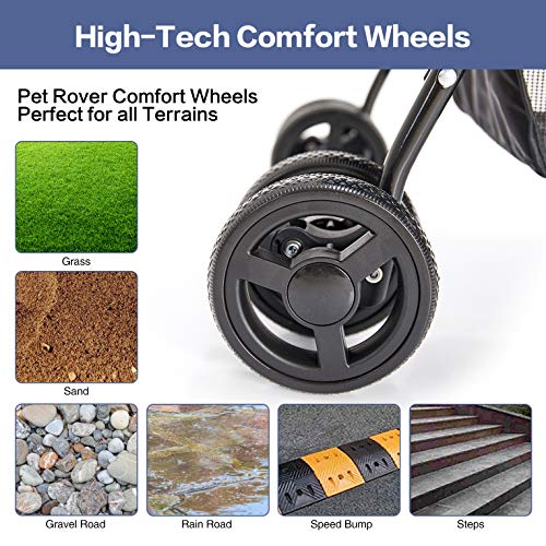 [Safe and Comfortable Pet Stroller]-6"x4pcs EVA Front wheels with swivel. 6"x2pcs EVA Rear wheels with suspension and link brake.