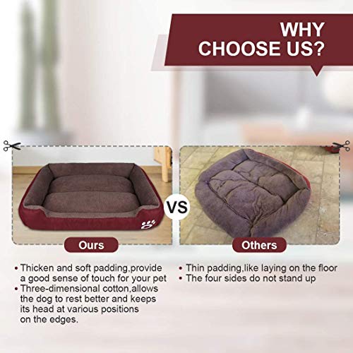 ?Friendly Pet Bed?Our pets dogs sofa bed in a rectangle shape allows your pets stretch out and sleeping wel. Super soft coral fleece surface makes body more comfortable. Thicken padding bottom and sides filled in high quality PP cotton , create a sense of security and provide head and neck support.